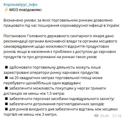 "1 посетитель на 20 кв. метров", - в Украине разрешили открыть продуктовые рынки, определив условия