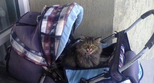 Кот запрыгнул в коляску к младенцу и уснул на его лице. 5692.com.ua »
