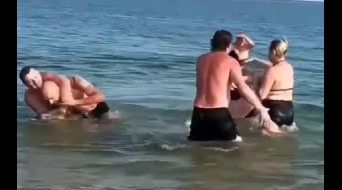 Конфликт возник из-за того, что туристы начали выбрасывать медуз на берег, что не понравилось другим отдыхающим. focus.ua »