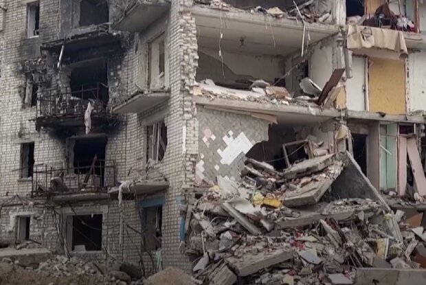 Автомобили с российскими и советскими флагами ехали по улицам Мариуполя на фоне многоэтажек без окон telegraf.com.ua »