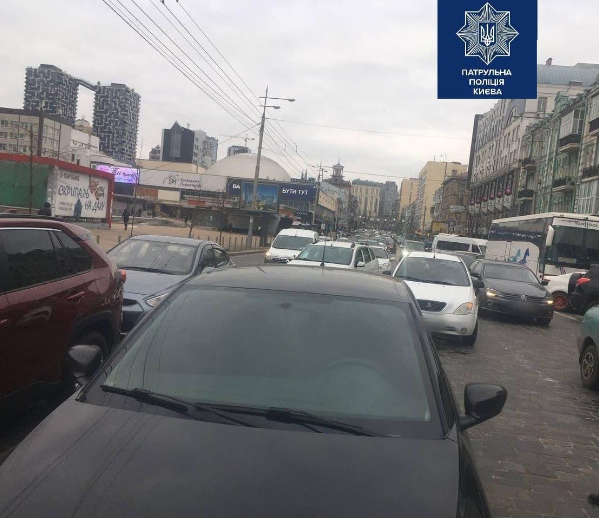 Пробка сковала Большую Васильковскую и прилегающую к ней улицу Физкультуры. unian.net »