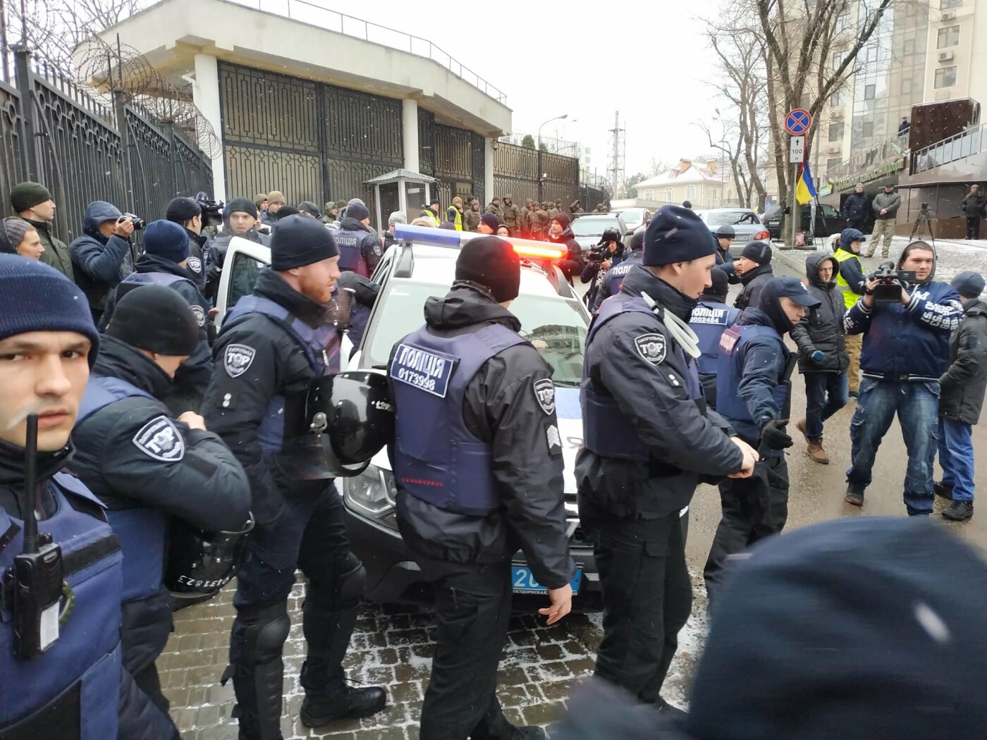 В Киеве добровольцы прошлись маршем к посольству РФ. telegraf.com.ua »
