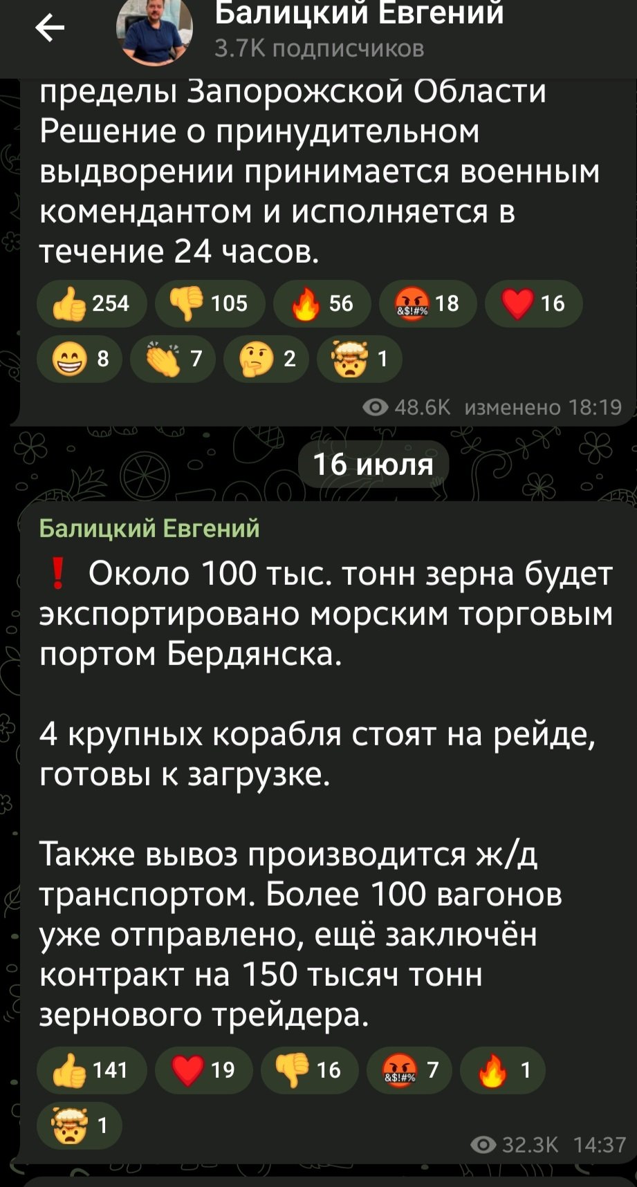 За тиждень ми проаналізували 689 повідомлень колаборантів в 10 телеграм-каналах, які працюють на тимчасово окупованих містах Мелітополь, Бердянськ, Енергодар, Токмак, смт. Якимівка, Дніпрорудне 061.ua »