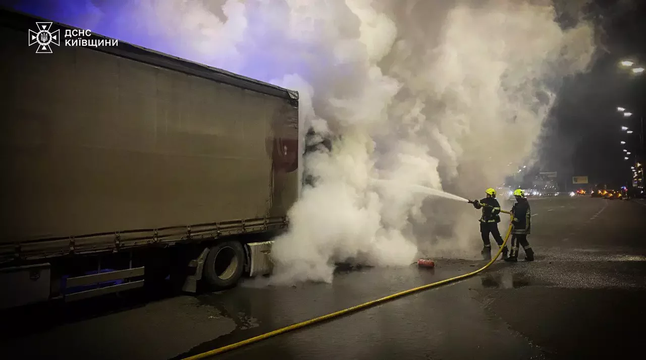 Біля Києва горіла фура, яка перевозила хімічну речовину, - ФОТО