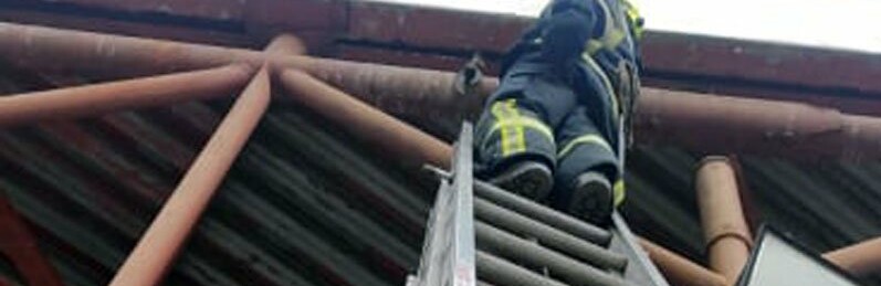 Чтобы освободить пернатого, один из сотрудников ГСЧС по лестнице поднялся на высоту около 6 метров. 0564.ua »