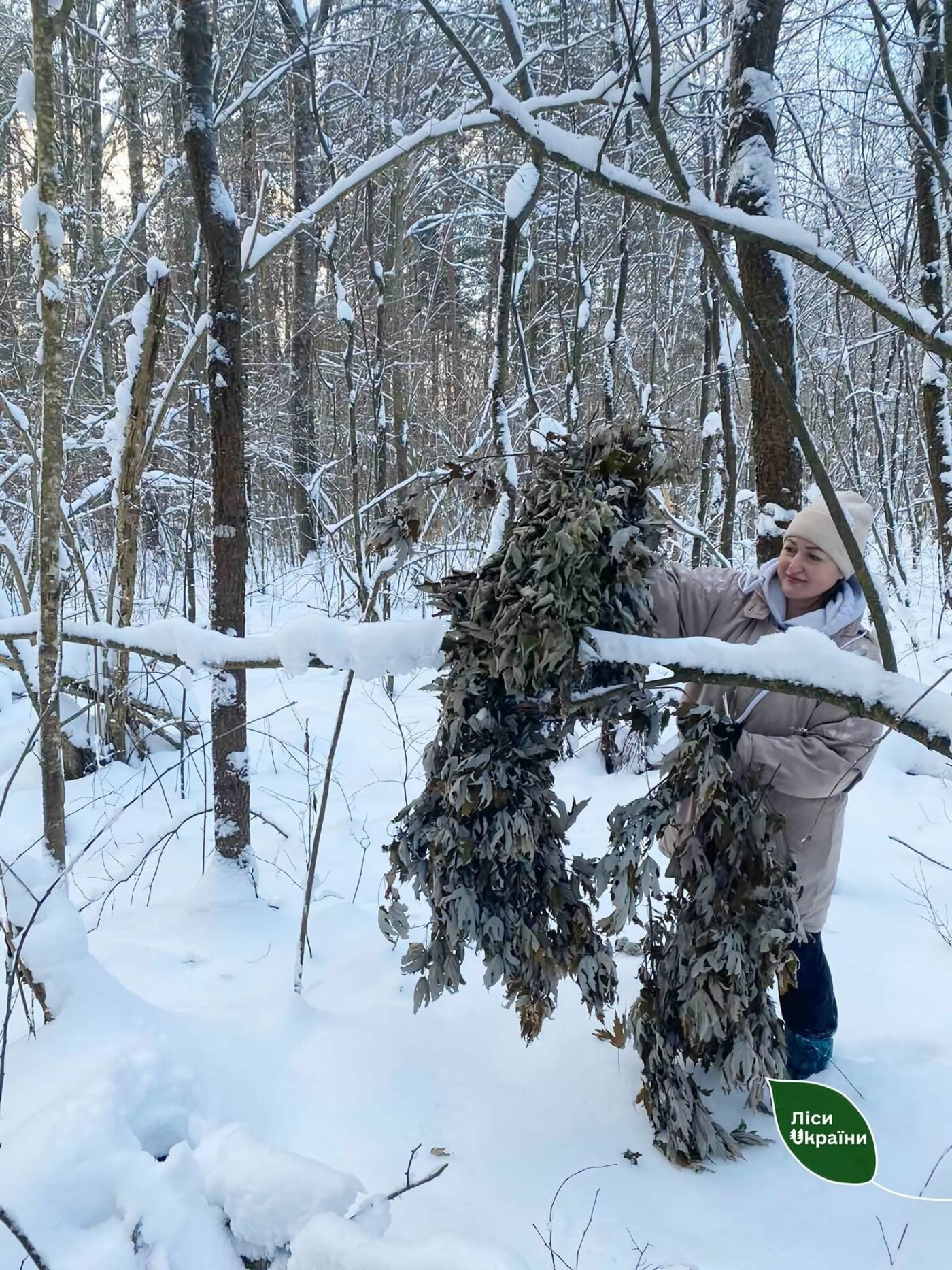 Сіно, віники, зернофураж, солонці: у парку на Чернігівщині підгодовують диких тварин