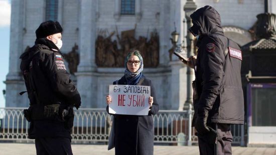 Москвич Андрей Крюков вышел на Красную площадь в Москве с плакатом "Христос за мир". Его задержали. Одиночных пикетчиков задерживают сегодня в разных российских городах. censor.net »
