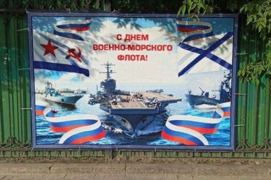 В российском городе Тюмень на одном из заборов повесили плакат с поздравлением с днем военно-морского флота РФ, но проиллюстрировали авианосцем Соединенных Штатов. Изображение плаката опубликовал 31 июля российский Telegram-канал ЧТД. gordonua.com »