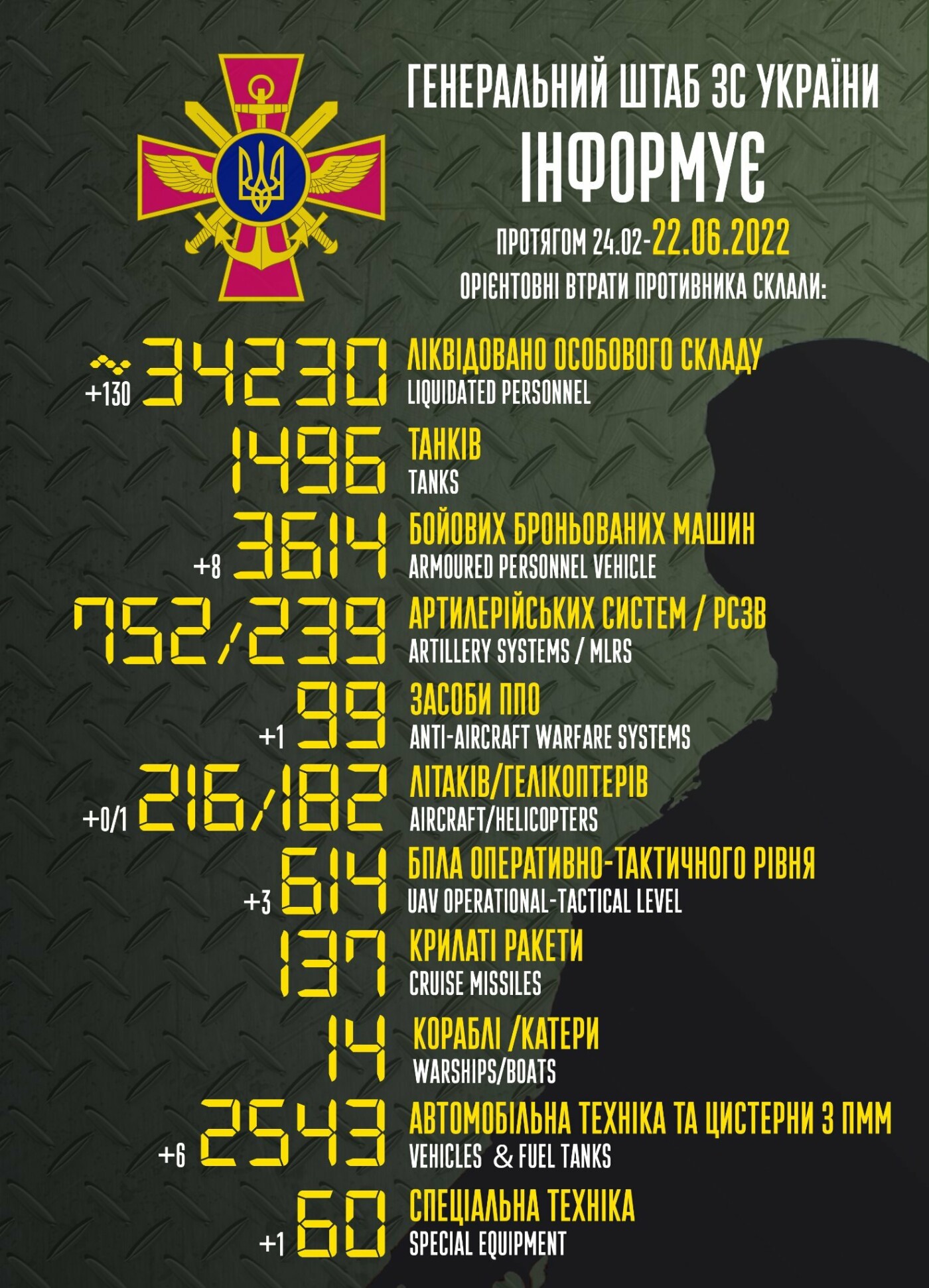 Також росіяни втратили 217 літаків та 3736 бойових броньованих машин 62.ua »