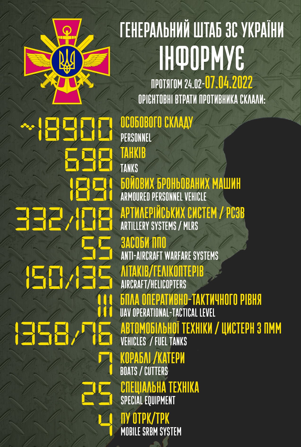 Також росіяни втратили 150 літаків та 1891 бойових броньованих машин 62.ua »