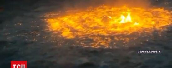 В Мексиканском заливе загорелся нефтепровод компании Pemex. Пламя вырывалось из-под воды, казалось, что горит море news.liga.net »