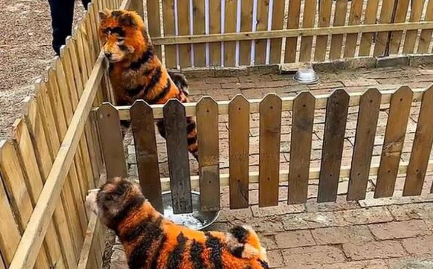 В зоопарке снова тайно покрасили собак: на этот раз из них сделали тигрят (фото)