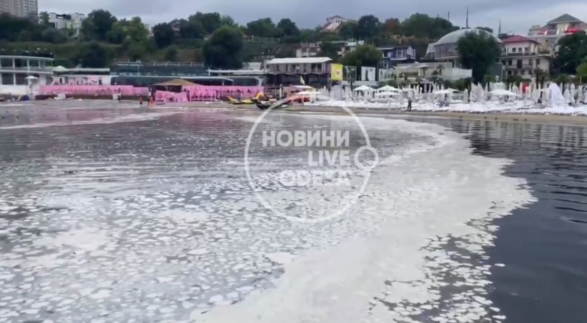 unn.com.ua »Море у побережья одесской Аркадии покрылось странными белыми пятнами, похожими на пену, на пляже стоит вонь. k.img.com.ua »