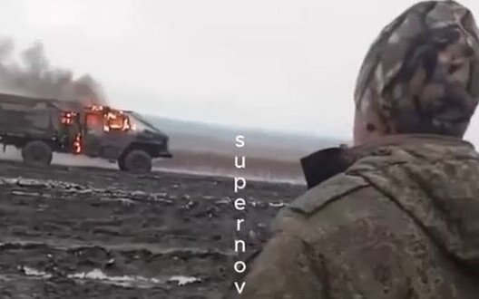 В сети опубликована видеозапись, на которой оккупанты наблюдают за своим грузовиком пораженным, вероятно, украинским дроном. censor.net »