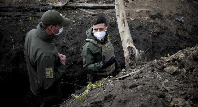Верховный главнокомандующий Вооруженными силами Украины Владимир Александрович Зеленский, одиннадцатого апреля в ходе рабочей поездки посетил Донбасс, где он побывал на позициях сил ООС. В том числе, президент посетил участок разведения №3 в районе Петровского. replyua.net »
