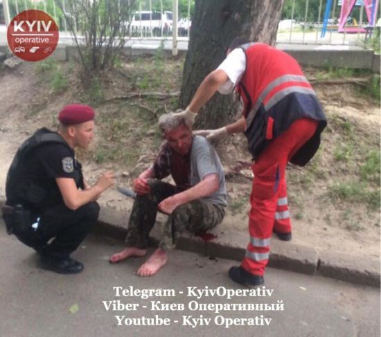Нападавший серьезно ранил двоих людей и попытался сбежать, однако прохожим удалось его задержать. k.img.com.ua »