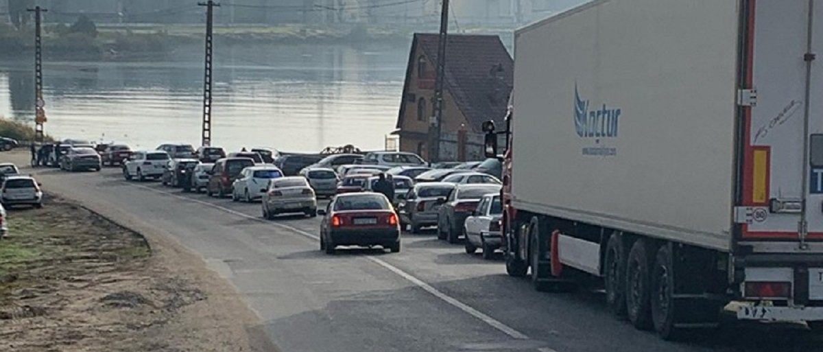 За час до открытия: перед отремонтированной понтонной переправой на Черноморск собралась очередь из автомобилей