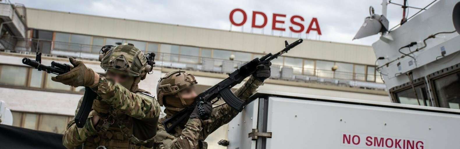 Отрабатывались абордажные действия, мероприятия на борту, ведение ближнего боя и зачистка корабля. 048.ua »