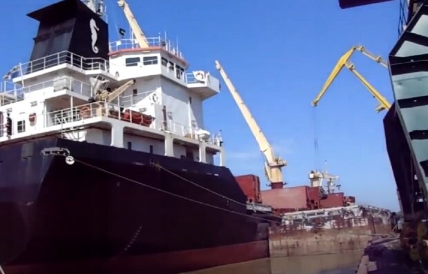 В Мариупольском порту оккупанты загружают корабль очередной партией краденого зерна