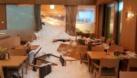 Из-за сильных снегопадов лавина разрушила часть отеля и парковку. ru.tsn.ua »