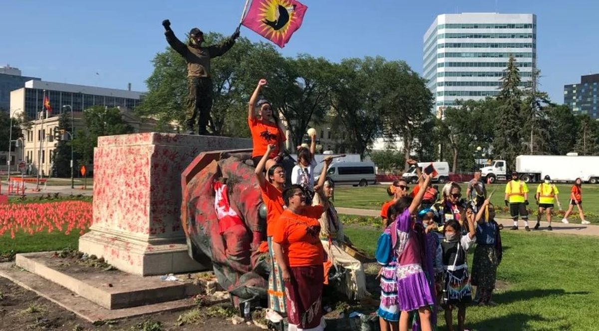 Сначала памятники британских королев Виктории и Елизаветы II облили краской, затем обвязали веревками и повалили на землю. focus.ua »