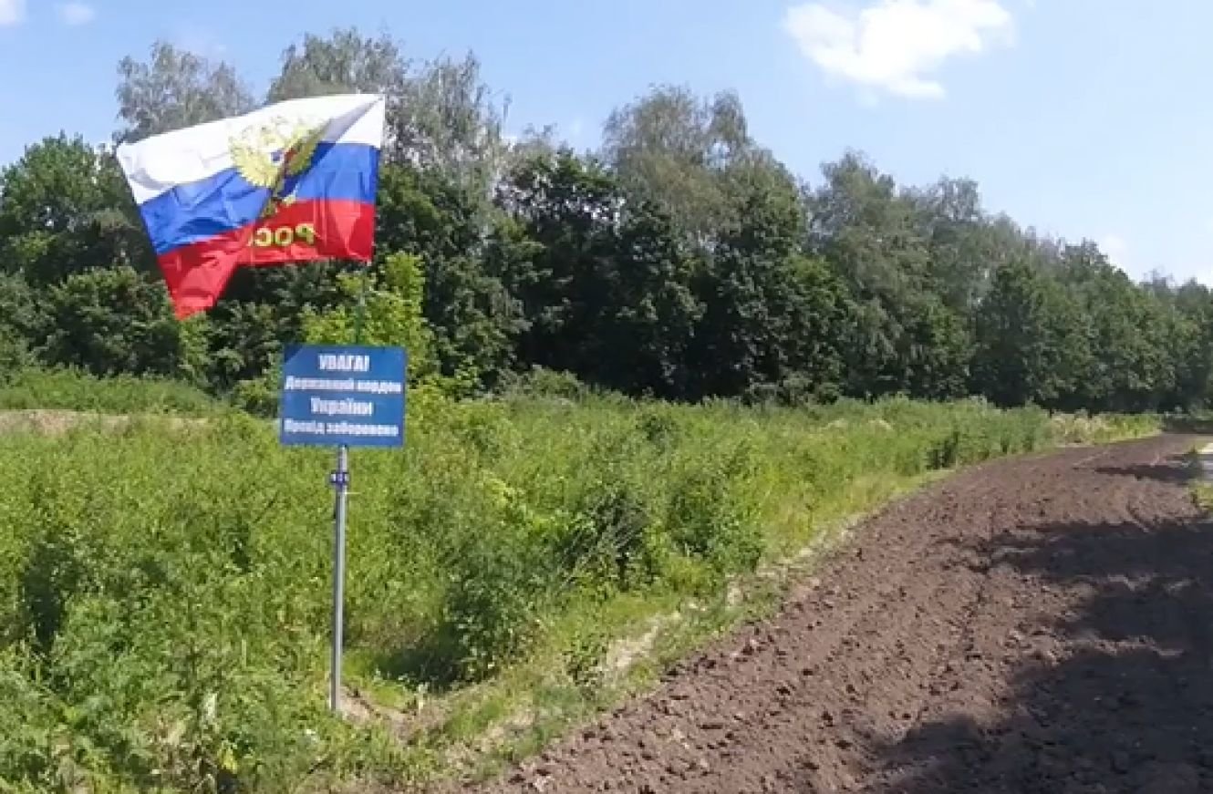 Невідомі встановили російський прапор прямо над табличкою “Увага! Державний кордон України”. 0542.ua »