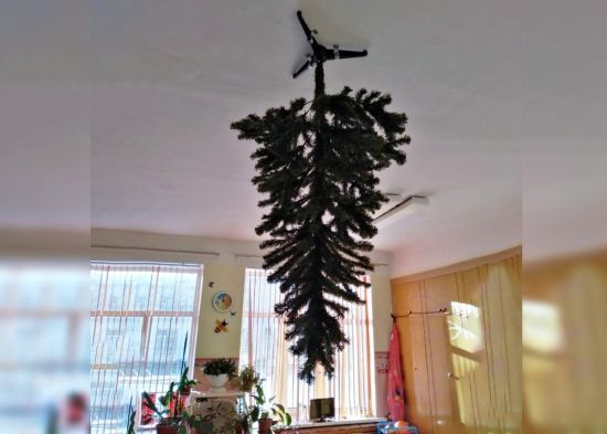 Все для детей: в России новогоднюю елку прикрепили к потолку в детском саду (фото)