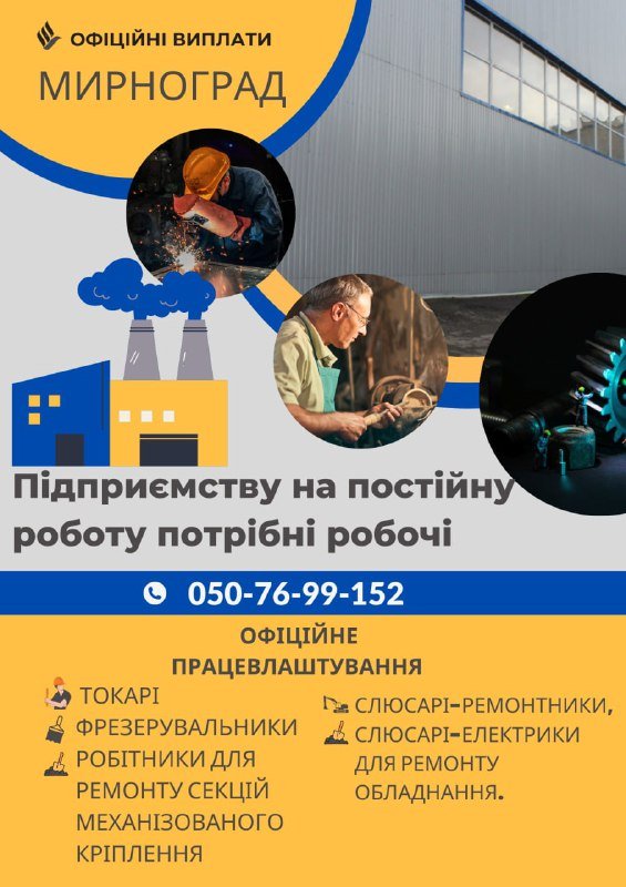Підприємству у місті Мирноград на постійну роботу потрібні.. 6264.com.ua »