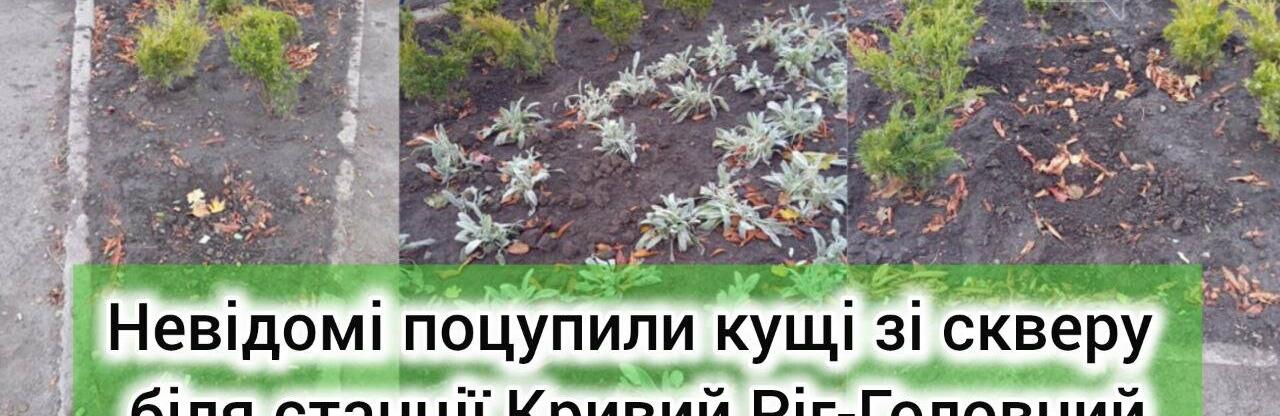 Невідомі поцупили кущі зі скверу біля станції Кривий Ріг-Головний, - ФОТО