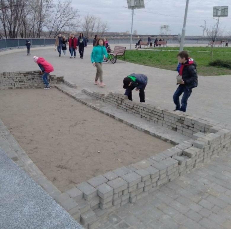 Тротуарную плитку уложили летом прошлого года, а в минувшие выходные, дети построили и нее "креспость" 061.ua »