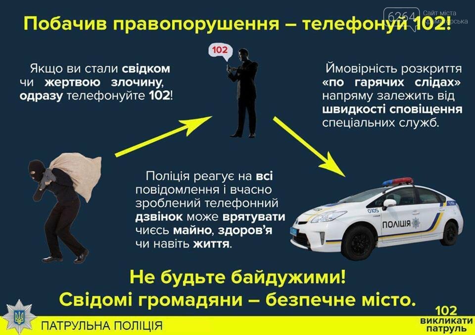 В случае если Вы стали очевидцем какого-либо преступления, патрульная полиция Краматорска и Славянска советует Вам: 6264.com.ua »