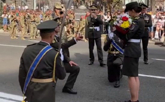 КИЕВ. 24 августа. УНН. В Киеве во время репетиции парада ко Дню Независимости на Крещатике военнослужащий признался своей девушке-коллеге, передает УНН.
