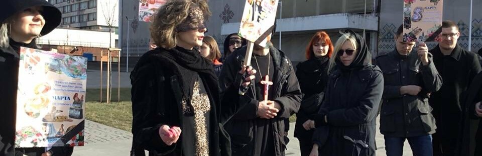 фиминистки и присоединившиеся к ним мариупольцы и мариупольчанки прошлись по центру и развеяли прах розового цвета 0629.com.ua »