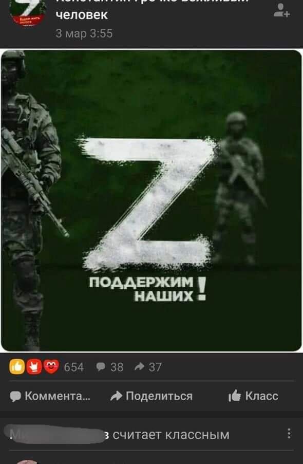 В одному з дописів, поширених жінкою, черговий кремлівський наратив: «Осетины подъехали. А там уже резерв их Чечни подтянулся. СОБР из Беларуси опять тоже там. Братья из Сирии приехали 057.ua »
