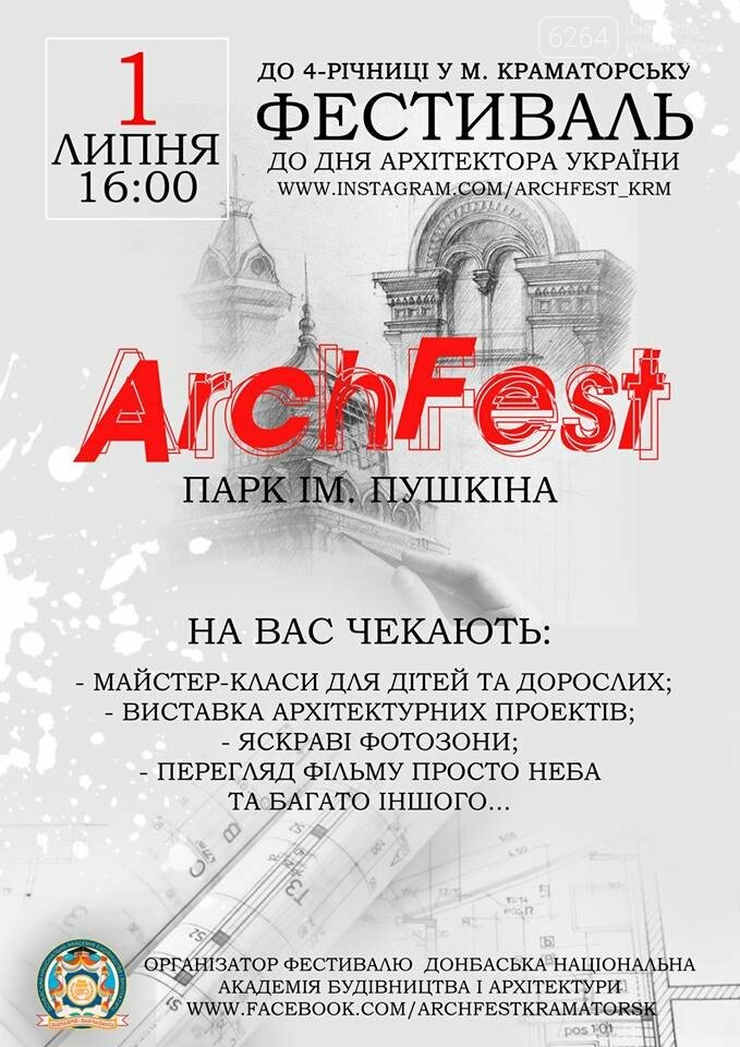 Сегодня, 1 июля, в Краматорске состоится ArchFest, посвященный Дню архитектора Украины. 6264.com.ua »