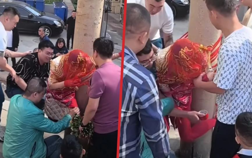 "Такие у нас традиции": жених с друзьями привязал любимую к столбу (видео)