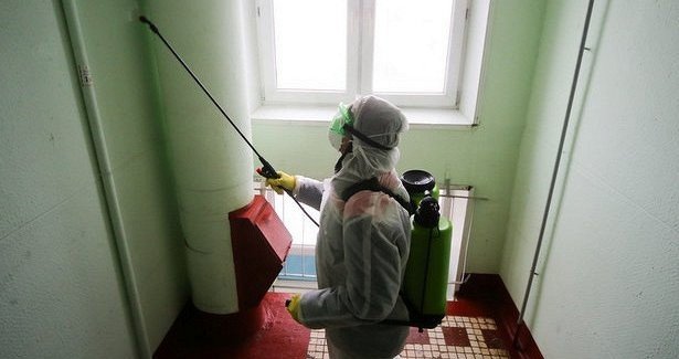 Дезинфицируют подъезды и места скопления людей. 06274.com.ua »