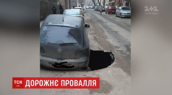 Причиной образования ямы могут быть коммунальные аварии. ru.tsn.ua »