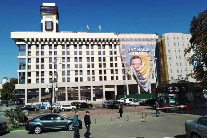 На банері видніється напис: «Тут наша земля». glavcom.ua »
