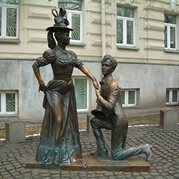 К 60-летию фильма «За двумя зайцами» скульптуру его героев, неудачливых жениха и невесты Свирида Голохвастова и Прони Прокоповны Серко, озвучили фразами из фильма на украинском языке. Об этом 6 октября сообщил «24 канал» ukraina.ru »