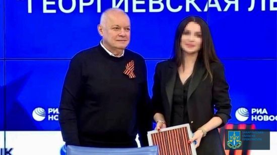 Жительнице Закарпатской области заочно уведомлено о подозрении в изготовлении и распространении материалов с отрицанием вооруженной агрессии России против Украины и оккупации части территории. Женщина регулярно выступает в эфирах российских пропагандистов и даже имеет общее фото с самым известным из них – Дмитрием Киселевым. ru.tsn.ua »