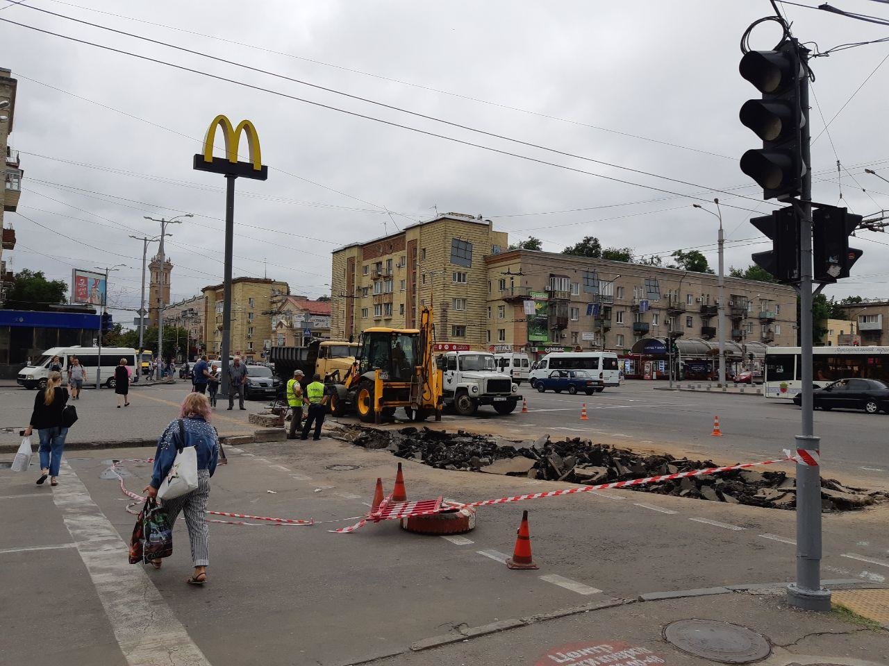В Запорожье на проспекте Металлургов "просел" асфальт, дорога перекрыта, - ФОТО