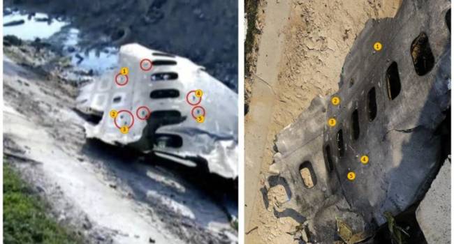 Гарант Конституции украинского государства Владимир Александрович Зеленский опубликовал на своей Facebook-странице фотографии, на которых можно оценить размеры дыр на корпусе потерпевшего крушение в Иране самолета Международных авиалиний Украины в результате попадания в него ракет ЗРК «Тор М-1». replyua.net »