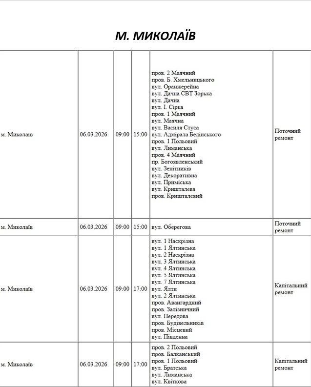 Планові відключення світла в Миколаєві 0512.com.ua »
