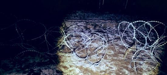 Пограничники сняли, как нарушитель ночью прорывался в РФ через колючую проволоку