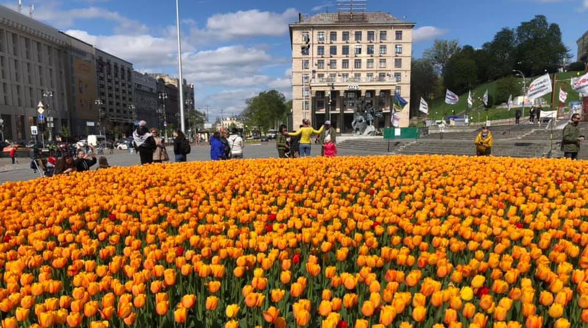 В центре Киева расцвели 100 тысяч нидерландских тюльпанов