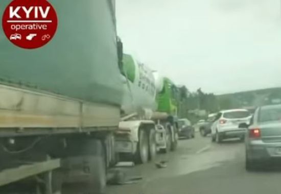 У одной из фур отказали тормоза. Водителя раздавленной легковушки доставали другие водители, теперь он в больнице. k.img.com.ua »