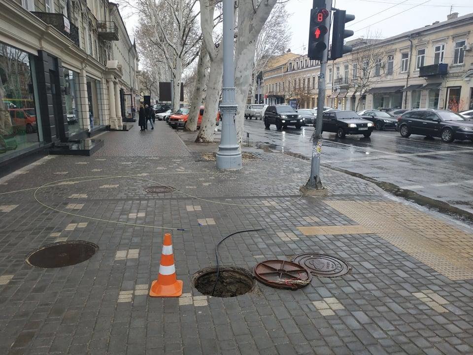 Продолжается дорогой ремонт улицы Ришельевской - уже установлены дырявые люки. 048.ua »
