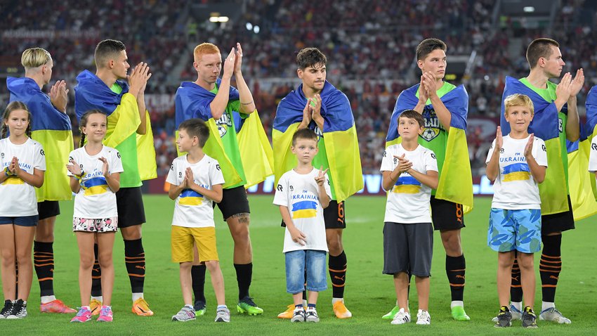На поле команди вивели українські діти-біженці. Гравці «Шахтаря» вийшли з прапорами України та у футболках із назвами міст-героїв, які постраждали від воєнної агресії РФ 62.ua »