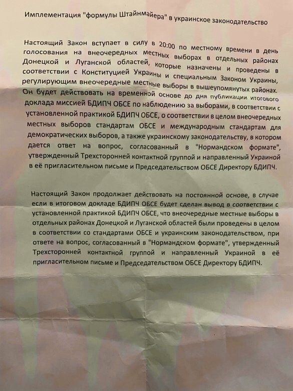 Документ занимает полстраницы и прописывает имплементацию "формулы Штайнмайера" в украинское законодательство. 62.ua »